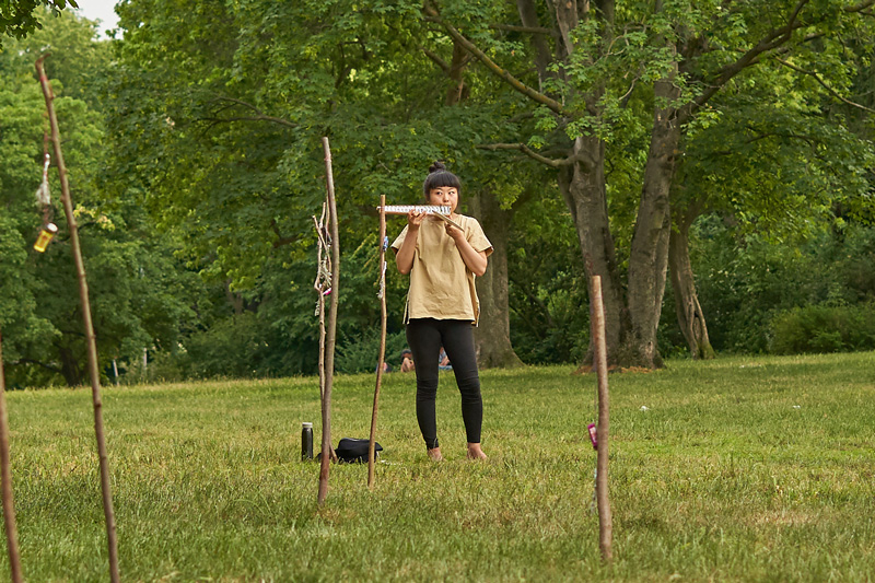 Die Partitur selbst haben wir als Kollektiv in einem Prozess von zwei Monaten gemeinsam erarbeitet. Grundlage waren u.a. die »Sonic Meditations« von Pauline Oliveros, die wir für unsere Performance
